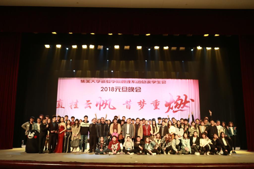 2017年12月20日晚,管理系“直挂云帆,昔梦重燃”2018年元旦晚会在诚毅学院影剧院举行。管理系主任刘大进、系党总支书记李达瑞出席并观看晚会。管理系相关负责老师、全体辅导员、部分其他院系师生及2017级全体新生共同欣赏本次晚会。