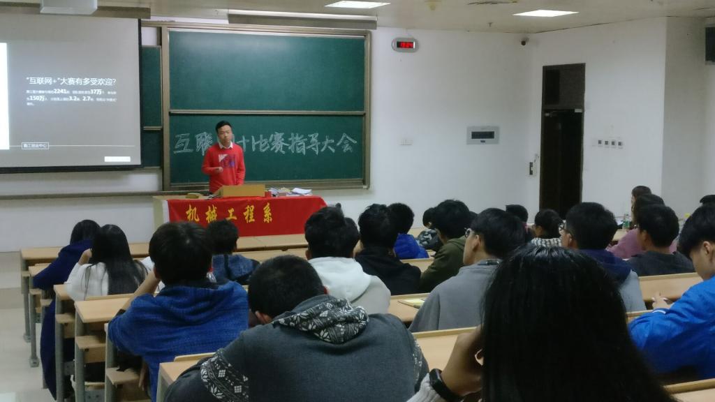 为加深同学们对“互联网+”大学生创新创业大赛的了解,更好地指导同学们参赛,12月28日晚,机械工程系、食品工程系勤工创业中心于教学楼3#503举办了“互联网+”创新创业大赛指导会。